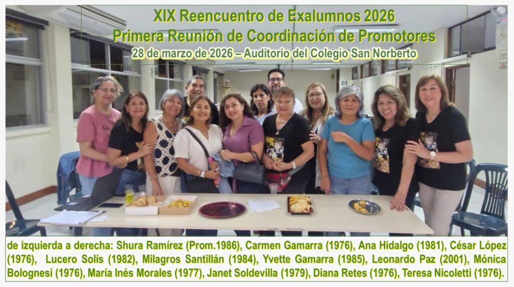 El sábado 28 de marzo se realizó la primera reunión presencial de coordinación de promotores del Almuerzo de este año en nuestra alma mater… A todos las gracias por su tiempo y la invitación a los representantes de las otras promociones, especialmente a las de quinquenios…